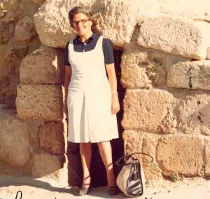 Olimpia Sgherri sulla tomba di Lazzaro: la fotografia durante un viaggio in Palestina (tratto dal dossier della diocesi su Olimpia Sgherri realizzato dalla sorella Maria Rosa insieme a Chiara Domenici)