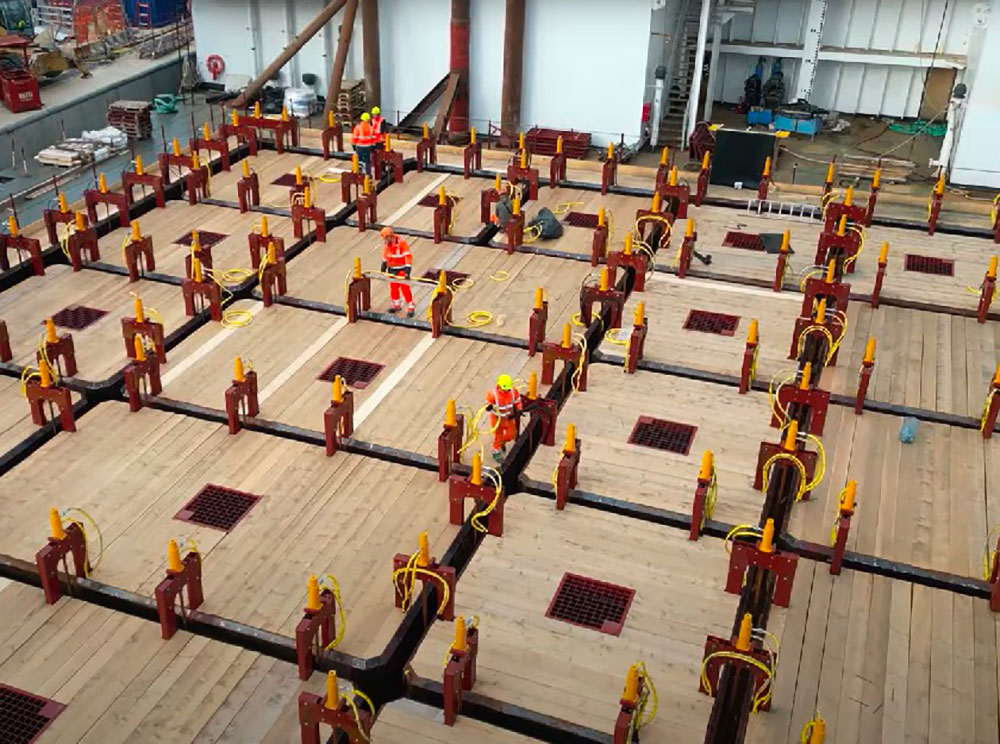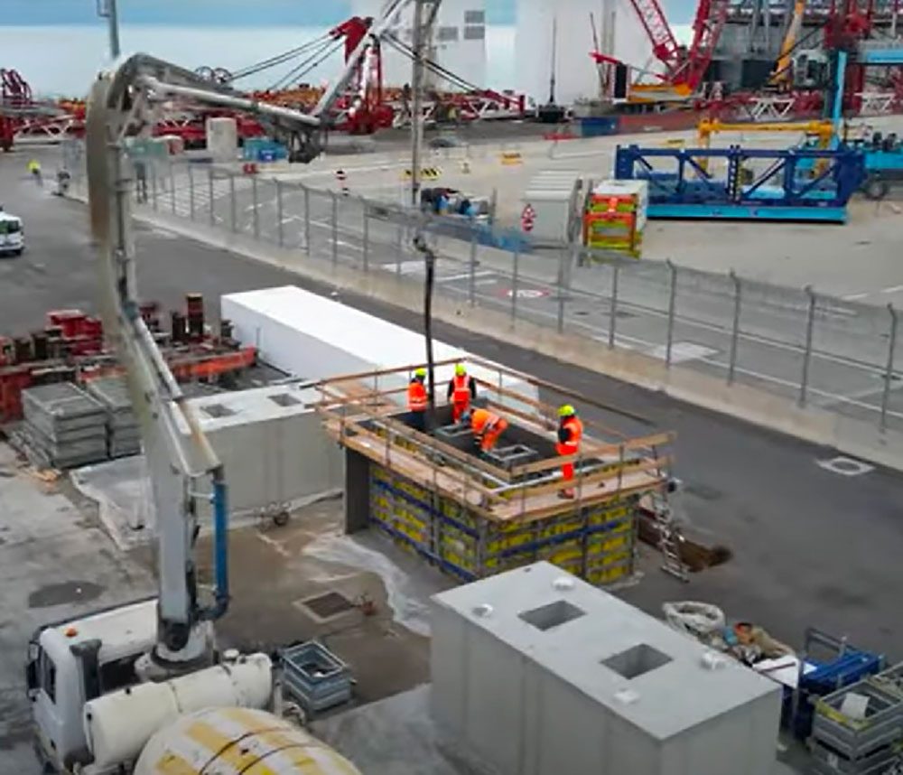 Cos’è la Tronds Barge 33? Lo definiscono «un vero e proprio impianto galleggiante, allestito con 7 gru e un sistema di betonaggio in loco». Questo consente di aumentare in modo significativo la produttività del cantiere: offre anche «la possibilità di immergersi fino a 20 metri di profondità» così da facilitare il varo e la movimentazione dei cassoni prefabbricati di grandi dimensioni.
