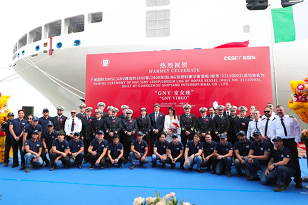Alla  cerimonia che, nel solco della tradizione marittima, si è svolta nella sede di Canton dello stabilimento cantieristico cinese, hanno partecipato i rappresentanti tanto del cantiere Gsi che del gruppo Msc, insieme a una delegazione di Gnv guidata da Franco Fabrizio, responsabile del dipartimento legale, e dalla madrina della nuova nave, Chiara Giovine, manager della società.