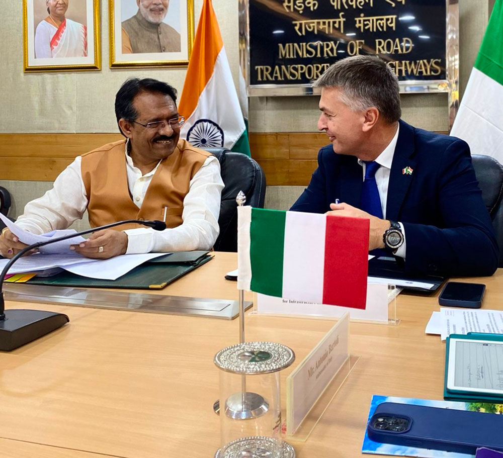 Il viceministro Edoardo Rixi con il ministro indiano Harsh Malhotra