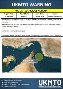 Il flash diramato dall’Ukmto, ufficio britannico nato per iniziatva della Marina inglese per tenere d’occhio la sicurezza della navigazione