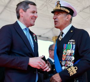 L’ammiraglio Berutti Bergotto (a destra) insieme a Matteo Perego di Cremnago, ex manager di Armani, in politica con Forza Italia e ora sottosegretario alla difesa