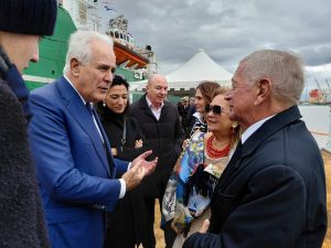 Nel quartier generale del gruppo Neri c’è anche il vescovo di Livorno, Simone Giusti, a officiare il rito della benedizione e del “battesimo” (con l’imposizione del nuovo nome alla nave), c’è anche il “governatore” della Regione Toscana, Eugenio Giani e c’è il sindaco di Livorno, Luca Salvetti; c’è il presidente in pectore dell’Authority labronica Davide Gariglio e c’è il presidente già nominato dell’Authority genovese Matteo Paroli, qui di casa perché a Livorno ha salito tutti i gradini della prestigiosa carriera. C’è la famiglia Neri con il susseguirsi delle generazioni e c’è l’autorità marittima, a cominciare dal comandante Giovanni Canù. C’è la galassia delle imprese locali con i loro vertici (ad esempio, Enio Lorenzini, Giovanni Laviosa, Enzo Raugei e Marco Dalli, Jari de Filicaia, solo per citarne alcuni) ma ci sono anche esponenti dell’imprenditoria fiorentina (Neri è numero due del più importante raggruppamento di Confindustria in Toscana, quello che raggruppa Livorno, Massa e Firenze).